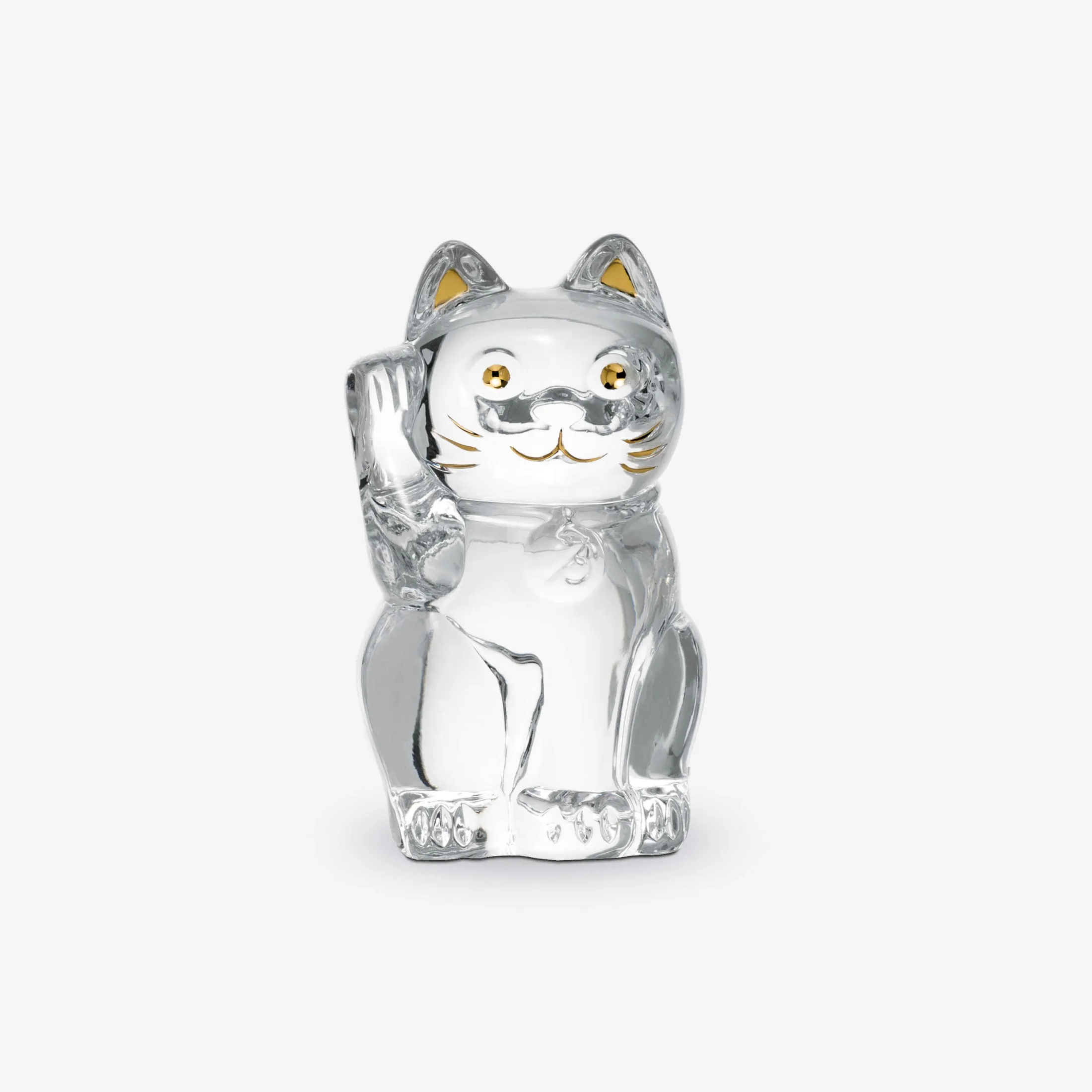 The Lucky Cat is a special charm of Japanese origin. The calico Japanese bobtail is often displayed at the entrance of one’s home, as it is intended to attract fiscal good luck. The feline creature with cartoonish features is seen beckoning with its right hand—a gesture that is said to protect one’s fortune. This Baccarat Clear crystal cat, or the Maneki-neko as it is called in Japanese, has a lot of careful detail. Baccarat’s painstaking technique are evident in the paws, the facial features, and the collar. Additional gilded flourishes are applied to the cat’s ears, eyes, mouth, and whiskers. This emblem of luck is a meticulously crafted piece that could draw good fortune directly into your home. The Lucky cat is also available in midnight crystal.