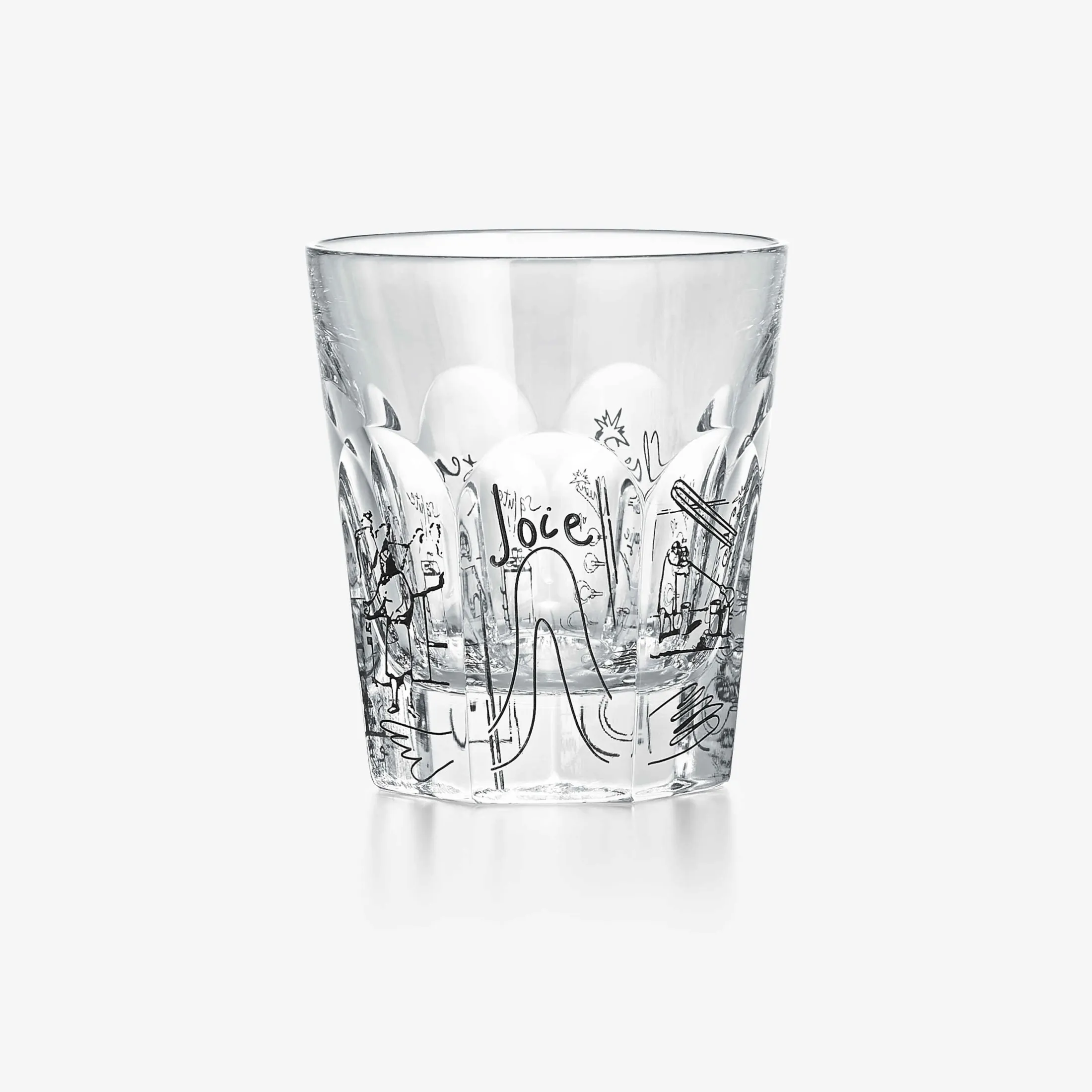 Harry Nuriev revisits the Harcourt tumbler and carafe, and the Sirius crystal ball, using the same graphic language he did for the Maison Baccarat entryway installation. Harcourt, the Baccarat icon, and Sirius, a symbol of the purity of crystal, become new means of artistic expression through his eyes. In the gilding ateliers of the Manufacture, artisans bring his vision to life, engraving and enameling, in black or in color, words such as salute, enjoy the moment, celebration, charm, alongside patterns and depictions of gestures symbolic of the Baccarat universe. Between heritage and reinvention, Harry Nuriev celebrates the Maison’s creative freedom and pays tribute to the savoir-faire of its collective, making emotion visible, and precious.