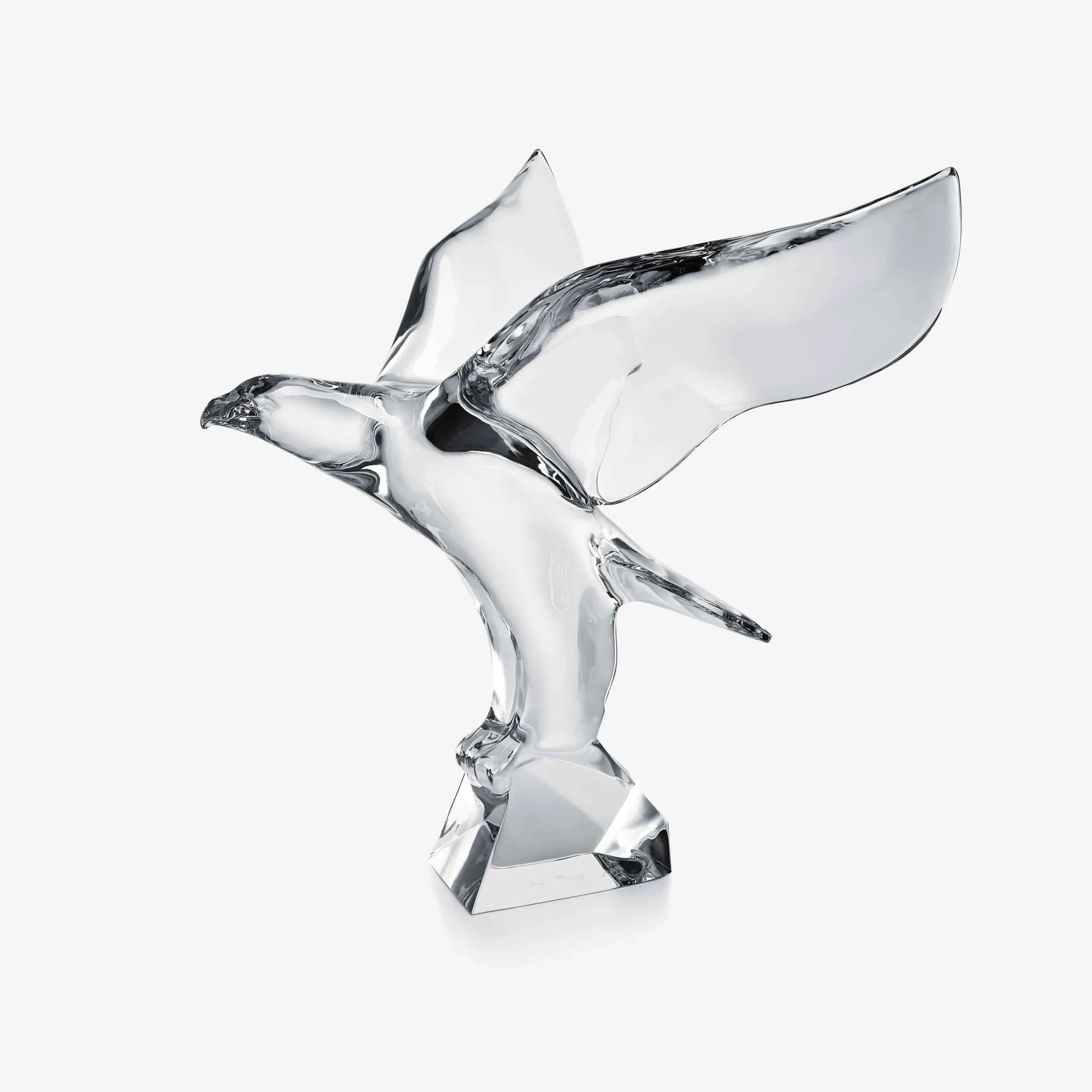 The Imperial Eagle designed by the Czech artist Jan Tesař for Baccarat, represents the finest in technical prowess. An exceptional piece for all art collectors and enthusiasts. Creating the piece called for the development of a special furnace to hold the span of the bird’s unfolded wings in a single block of crystal. This monumental piece of 34 kg of spectacular dimensions is then cut by the manufactory finest craftsmen (“Meilleurs Ouvriers de France”). Perched on a rock with wings spread, its beak pointed forward and piercing eyes tracking an invisible prey, the Imperial eagle is captured in an imposing posture. King of the sky, able to rise above the clouds, the eagle is a symbol of strength and prestige.