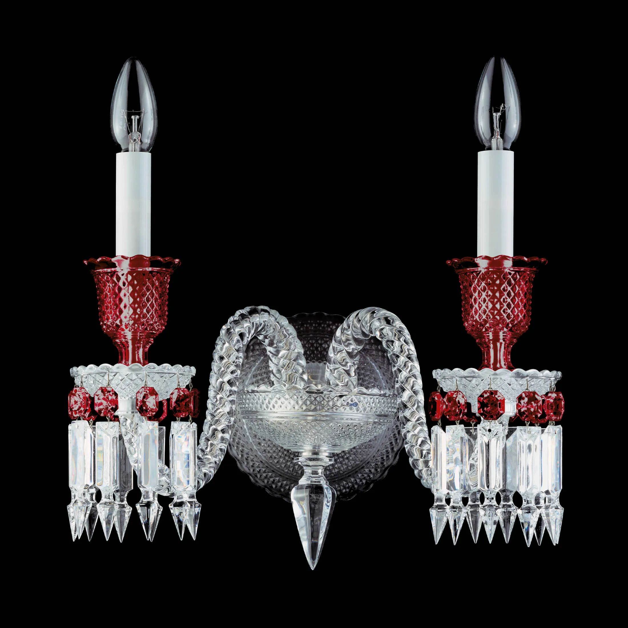 Baccarat signature, the octagonal red ruby suddenly multiplies to adorn with a thousand lights the Zénith clear and red crystal wall sconce in a unique and extraordinary color play. The vivid red is the result of the fusion of clear crystal and 24 K gold which gives it its vermillion luminescence. Baccarat’s red crystal sparkles with the glow of a thousand flames within the clear and flickers with all the craftsmanship and passion for perfection that went into its making. This Baccarat creation echoes the lavish coloured chandeliers in the Dolmabahçe Palace in Istanbul which has the largest collection of Baccarat chandeliers in the world.