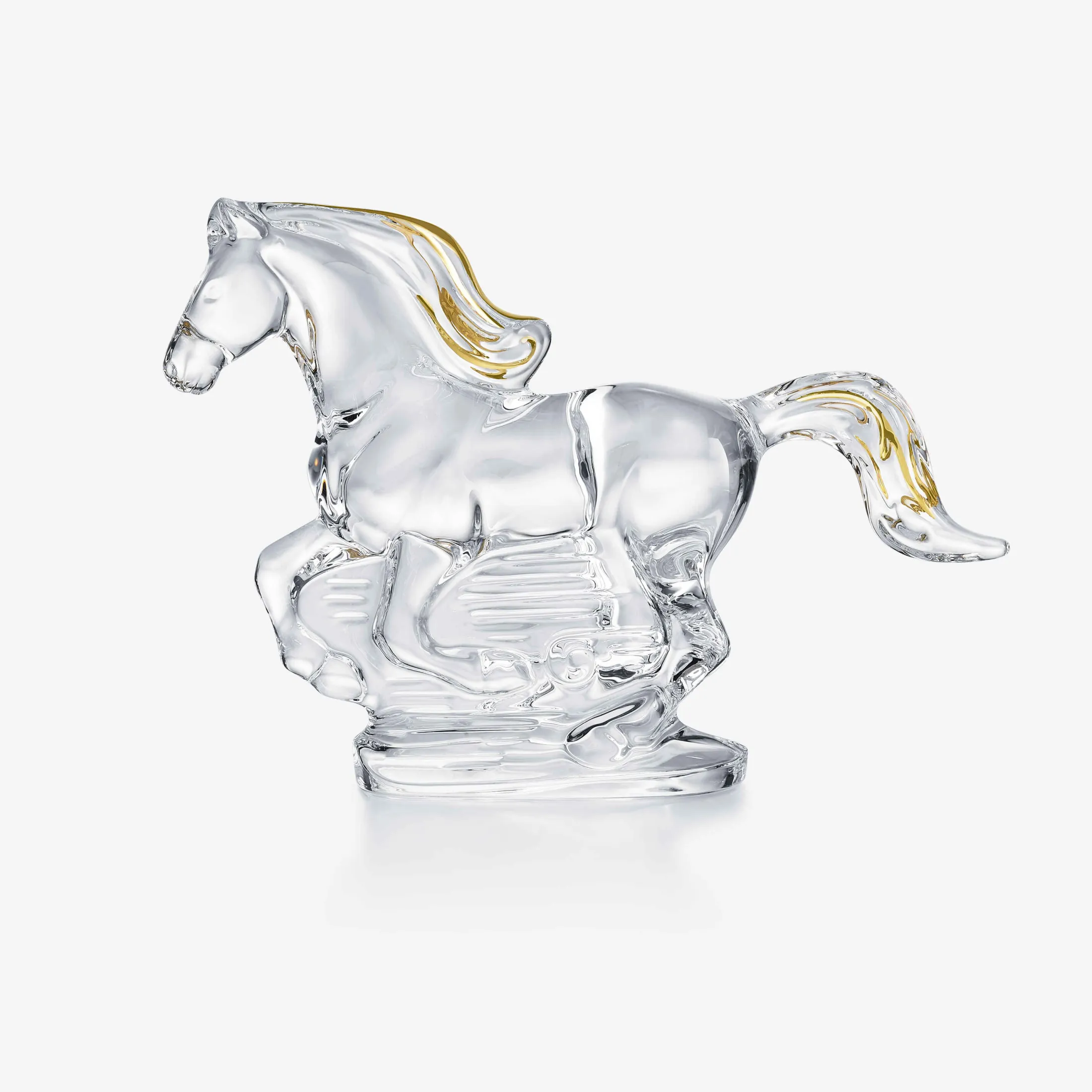 Baccarat celebrates the Year of the Horse with a creation full of spirit and vitality. Born from the expert craftsmanship of the Maison’s artisans, the Baccarat horse is sculpted in motion, mane flowing in the wind—embodying the boldness of those who forge their own path. Conceived by artist Allison Hawkes, the piece captures the power and refined grace of the horse, enhanced by the crystal’s scintillating reflections. The gold, which enhances its mane and tail, is delicately applied with the precision of Baccarat’s gilders.Emerging from the purity of crystal, the Baccarat Horse pays tribute to the fiery energy of the seventh animal in the Chinese zodiac, illuminating aspirations.