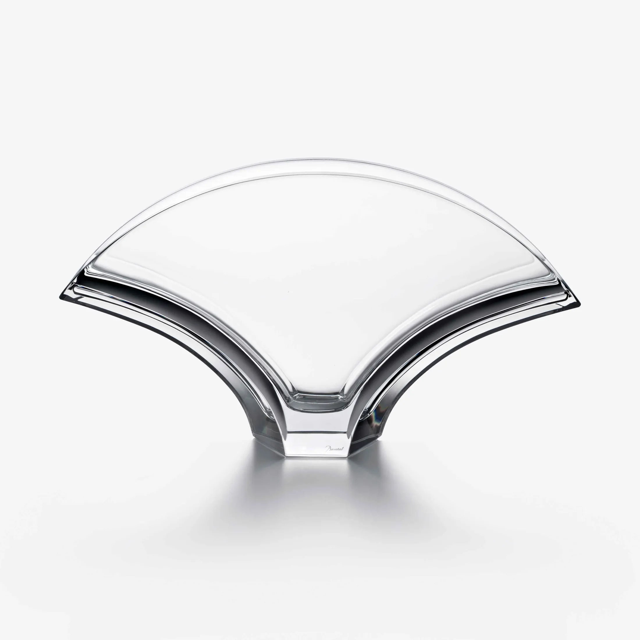 The form of the Baccarat Clear crystal Ginkgo Extra vase is a perfect homage to its namesake, the ginkgo biloba leaf. The tree, which is native to China, is easily distinguishable thanks to its large wing-like leaves. The vase’s immaculate silhouette fans out into a resplendent translucent arc. It is cut in a continuous, uninterrupted span of Baccarat Clear crystal: a striking piece, amplified all the more by its considerable size. The Ginkgo vase is capable of rendering any floral arrangement into a true botanical showcase, allowing the stems to spread amply and the buds to flourish freely. It is also an immaculate piece unto itself thanks to its a skillful showcase of craftsmanship.