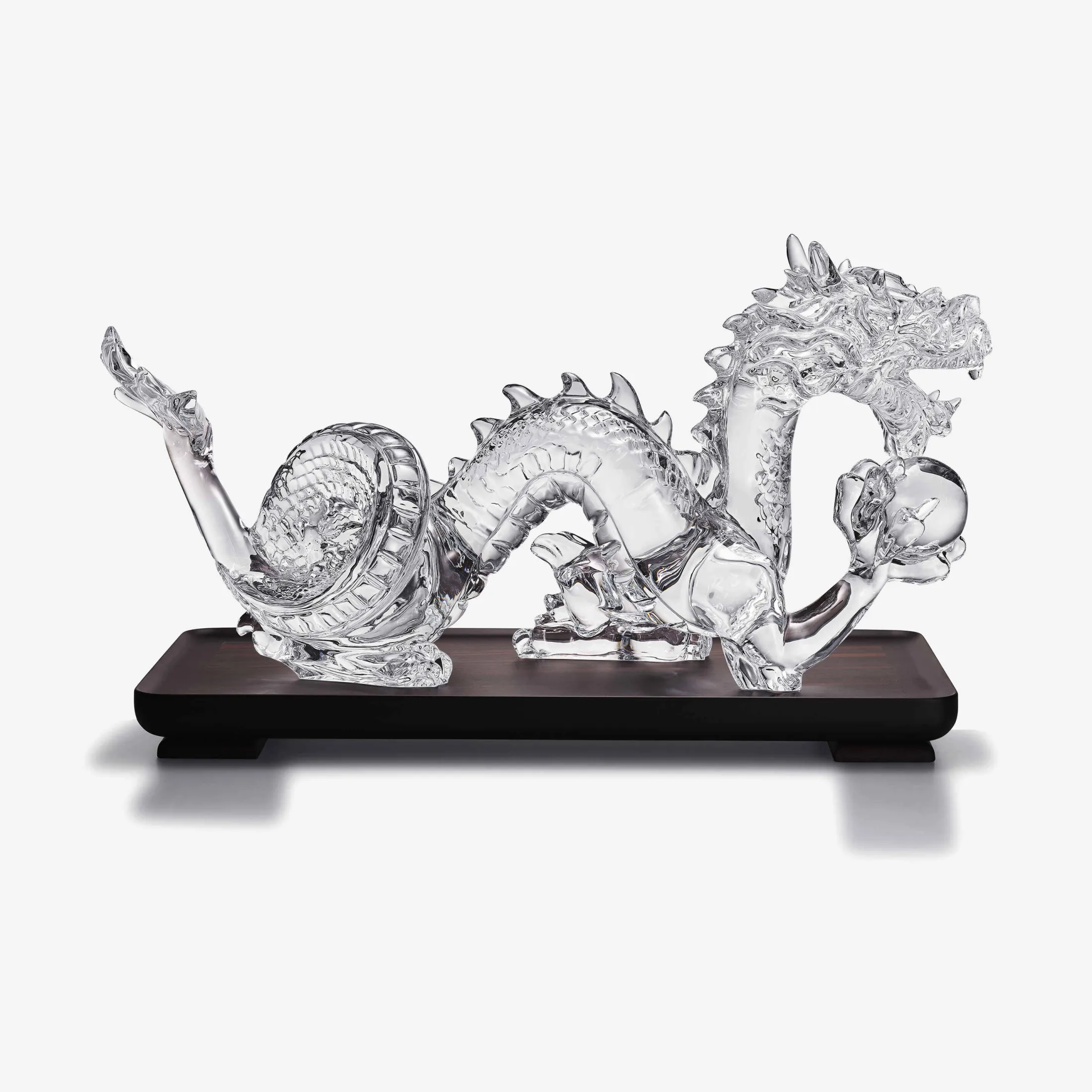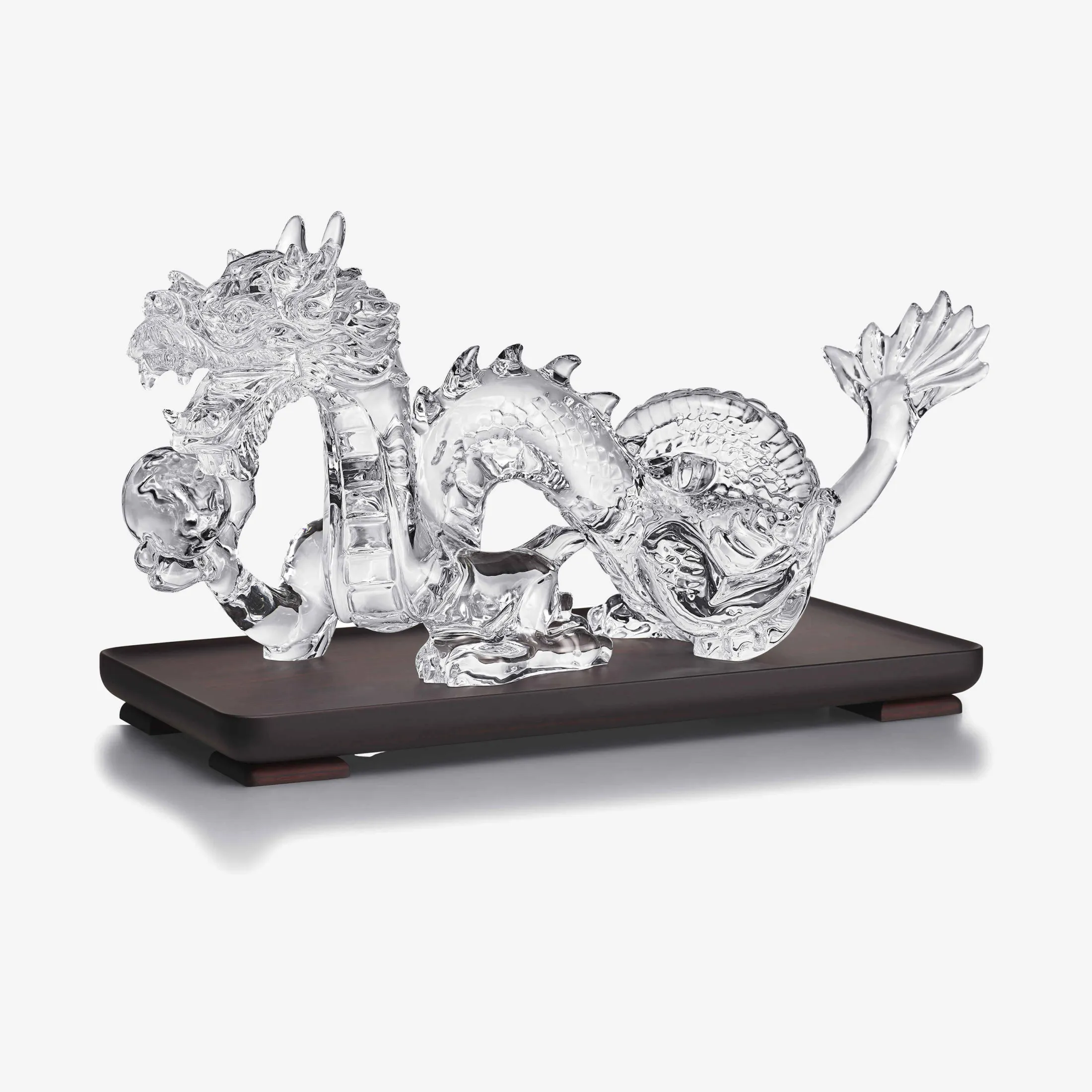 An emblematic figure in the Zodiac Collection, this prestigious creation celebrates the year 2024. Following in the footsteps of its ancestors who watched over the Imperial House, the Dragon Légendaire stands on its ebony base, proudly bearing a luxuriant mane.Shaped by the alchemy of joy, the light that radiates through this crystal masterpiece is a reminder that the Dragon Légendaire is an essential talisman, a symbol of benevolence, power and nobility.Designed by Allison Hawkes, the Dragon Légendaire calls for a wide range of skills, requiring the creation of a unique mold for each of its 50 components. It necessitates the assistance of a Meilleur Ouvrier de France and a Chevalier des Arts et des Lettres. The balance between Ying and Yang can be observed in the accuracy of its proportions, the finesse of its details and the reflection of its scales. The decorations carved into its body lend themselves to the personalization of your desire. On request, this piece can be adorned with ornamentation created by artist Michael Cailloux.