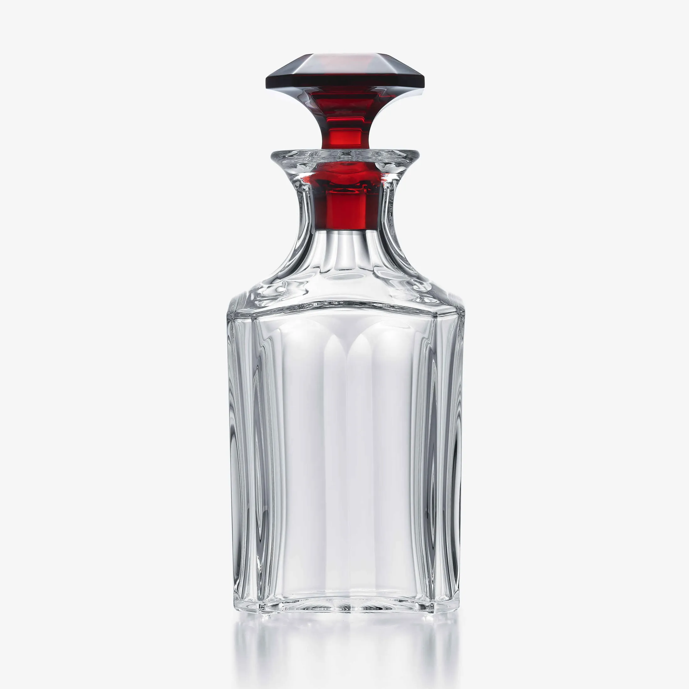 Baccarat unveils a collection of its iconic decanters crowned with a red crystal stopper, the Maison’s signature color. Symbolizing fire, love, and passion, red is an energizing hue that stimulates the senses. With its deep intensity, Baccarat red is the result of fusing clear crystal with 24-carat gold powder. Like Baccarat chandeliers adorned with a distinctive red crystal tassel, these Harcourt, Harmonie, and Louxor wine or spirit decanters embody refined craftsmanship and add a festive, joyful touch of color to any occasion. Harcourt, the Baccarat icon, has traveled the globe with its bold facets and graphic silhouette. Since 1841, the collection has graced the most prestigious tables, transforming every moment into a refined celebration. Sculpted from the purest crystal, the Harcourt Whisky decanter captures the light in a captivating way, revealing a play of reflections that embellishes each liqueur. An essential for discerning connoisseurs, the Harcourt whisky decanter elevates every tasting into a unique sensory experience.