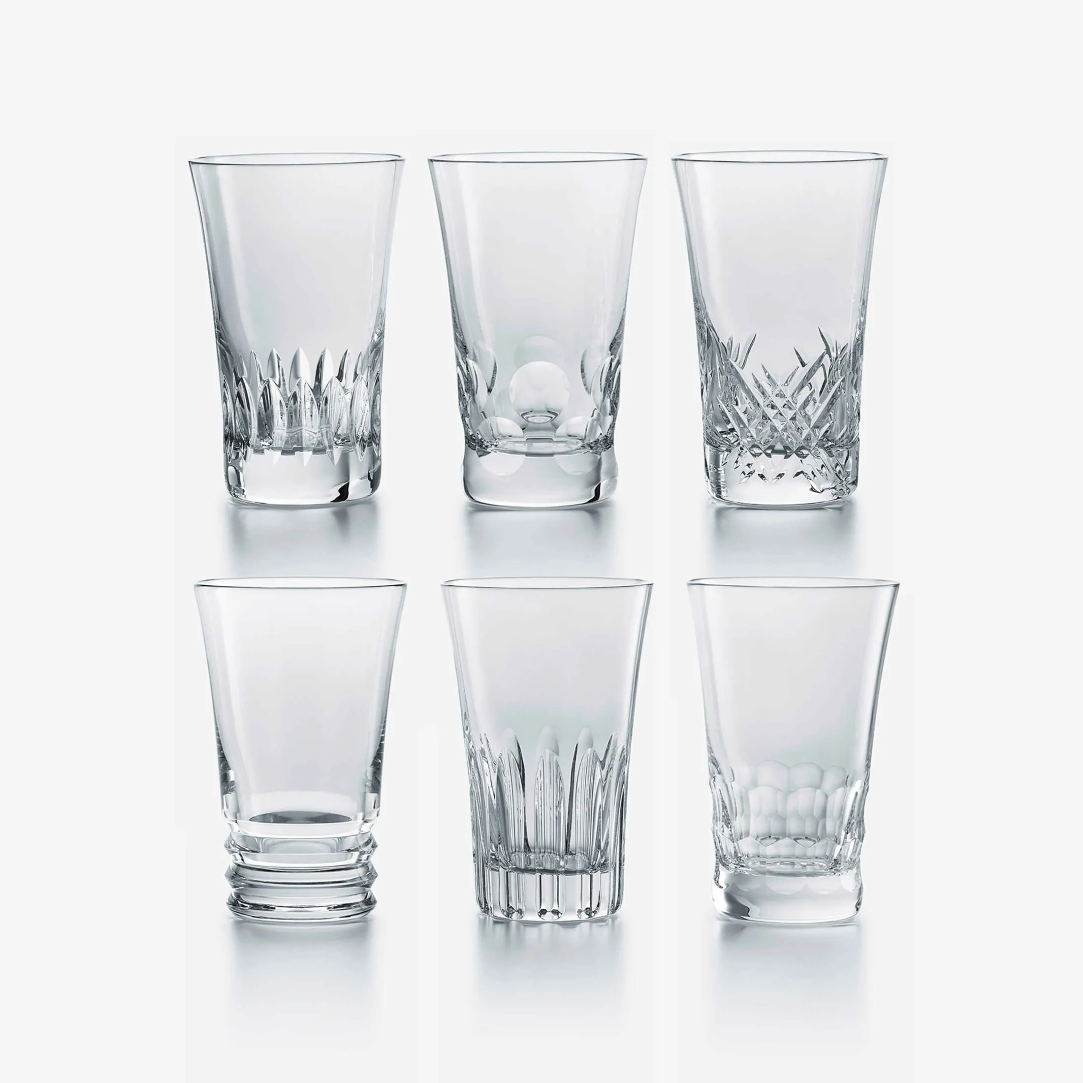 The new set of six highballs, each with a different creative pattern, for more Baccarat days. A set of crystal highballs offered in six iconic Baccarat cuts: Pontils, small diamond cuts, deep vertical and horizontal beveled cuts, and small flat cuts. The mix and match trend now offered in a new size is perfect for cocktails, long drinks, beers and more. The glasses are versatile and can be used for multiple daily occasions, day and night; morning, brunch, lunch, tea and cocktail time, with cold or hot beverages. This box contains 6 highballs: the Béluga, Etna, Vega, Biba, Stella and the Rosa measuring 14 cm. Everyday is the collection for creative cocktail enthusiasts and lovers of rare whiskies.