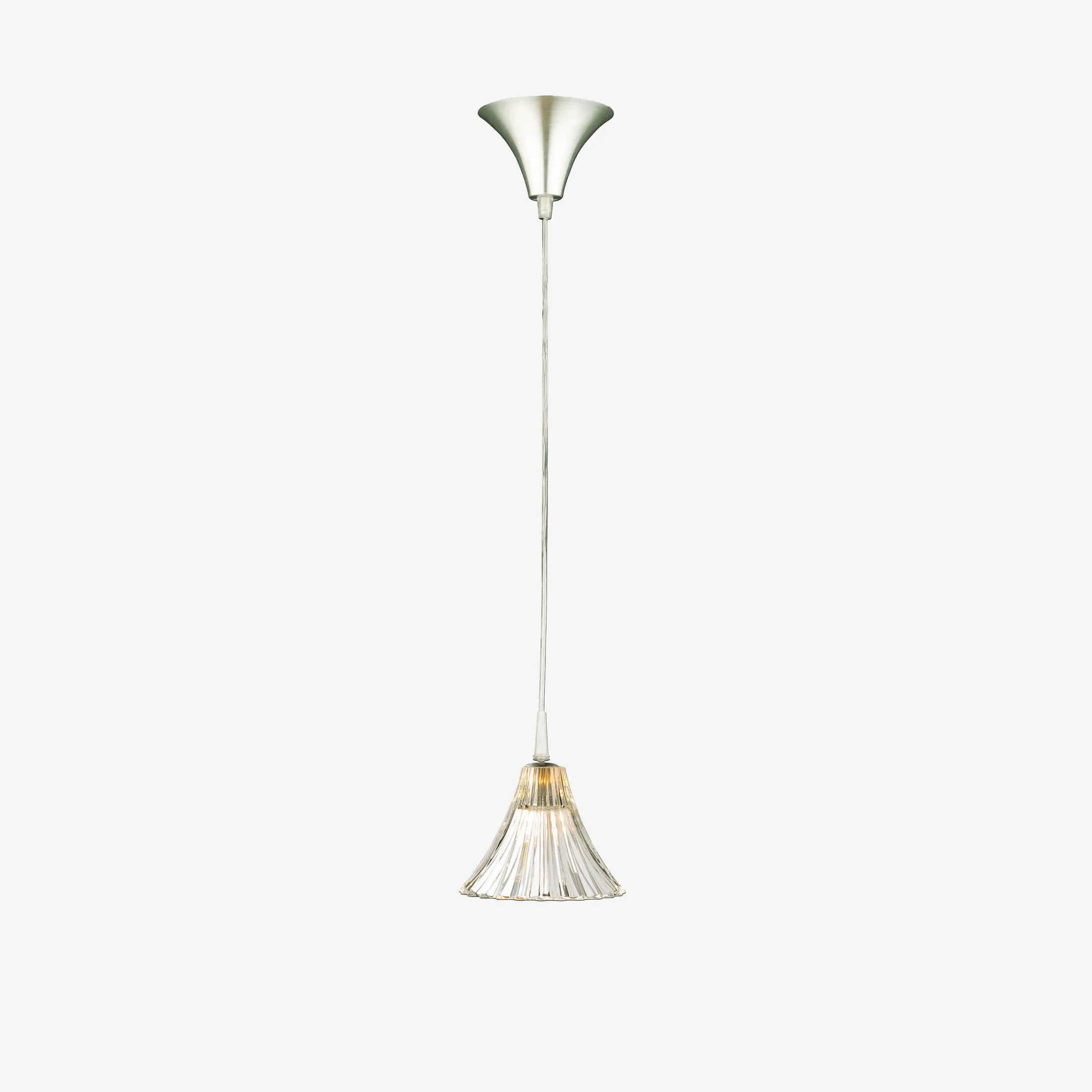 This Baccarat crystal ceiling lamp features a design that glimmers whether or not the lamp is illuminated. Its tulip shape enhances the light-scattering properties of the Mille Nuits form. The silhouette gradually fans out, as though blossoming from the suspended tubing. Easily integrated into any interior, the light scintillates magnificently and is enhanced by a specially- applied metallic sheen. Designed by Mathias for Baccarat, Mille Nuits is a reference to the 1001 Tales of The Arabian Nights. The Mille Nuits collection includes other lighting fixtures (candelabras, chandeliers), and bar and tableware (tumblers and plates).