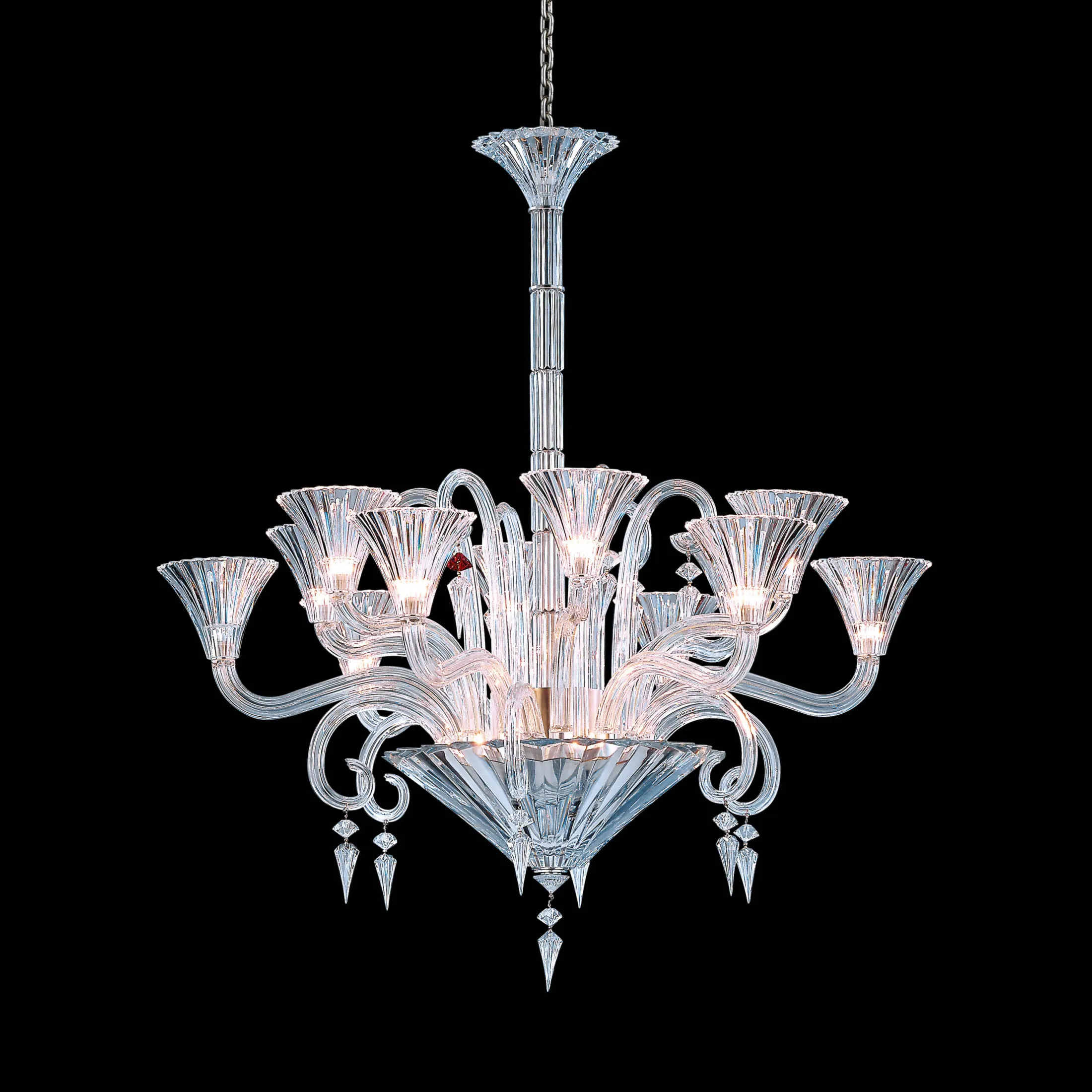 A unique expression of restyled Oriental magic, the « Mille Nuits » collection designed by Mathias conjures up the baroque refinement of Persian legends and the splendor of palaces from Arabian Nights tales. The emblematic Baccarat ruby red octagonal tassel hangs amongst the hexagonal and prismatic crystal pieces. Wonderfully cut crystal emphasizes the diffusion of light and the glitter of the Mille Nuits chandelier. True to the Baccarat tradition, this sumptuous chandelier blends in perfectly with every sophisticated home interior. The all-crystal chandelier comes in 7 versions with 6, 8, 12, 18, 24, 36 or 42 lights depending on your preferred level of luminosity, and with optional candleholders.