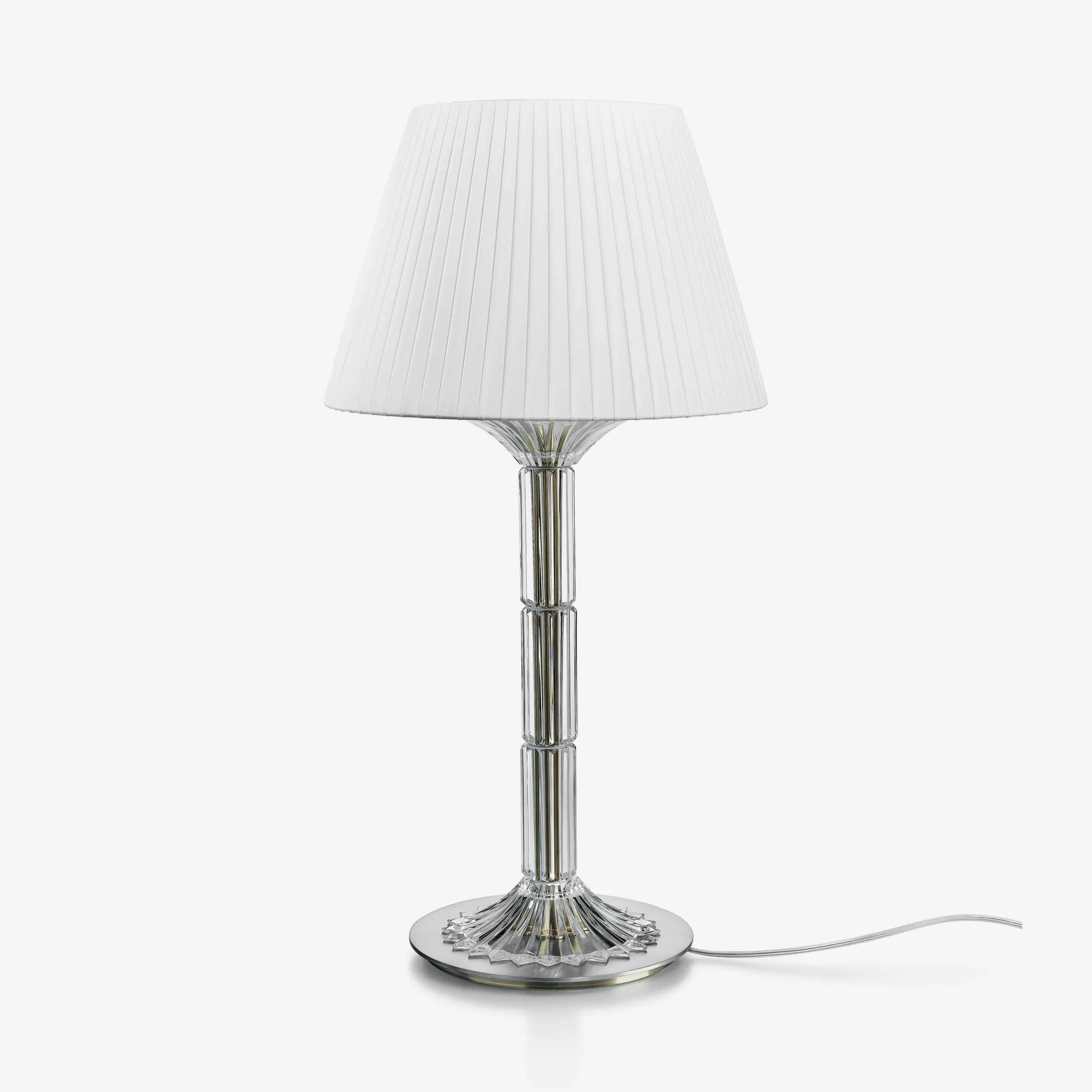 The Mille Nuits lamp combines refinement and timelessness. Covered of beveled-cut crystal and topped with a textile lampshade, it adds a baroque and modern touch at the same time to every interior. The Mille Nuits story with chandeliers and candelabras continues to unfold with a new creation from the designer Mathias. The Mille Nuits lamp combines refinement and timelessness. Covered of beveled-cut crystal and topped with a textile lampshade, it adds a baroque and modern touch at the same time to every interior. The crystal is magnified by the beveled-cut which creates a play of light in the transparency of the material.
