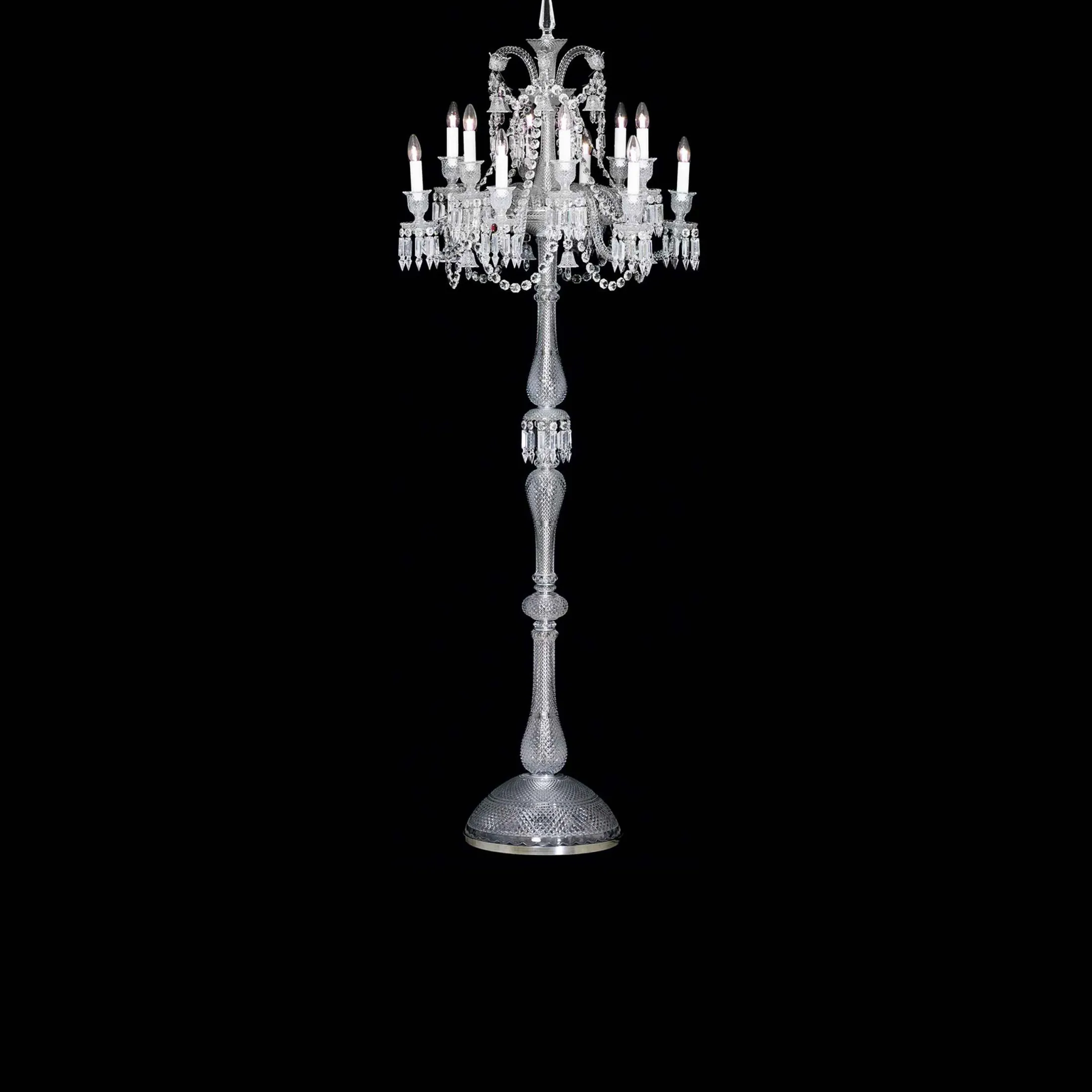 This candelabra, whose architecture is strictly identical to the clear Zénith one, is revealed under a new light thanks to its suit of golden red crystal, iconic of Baccarat, which magnifies its ornamentations. A clear crystal octagon conversely represents Baccarat’s signature. Black electric wire. Several options for staging your candelabra: with or without lampshade or hurricane shade.