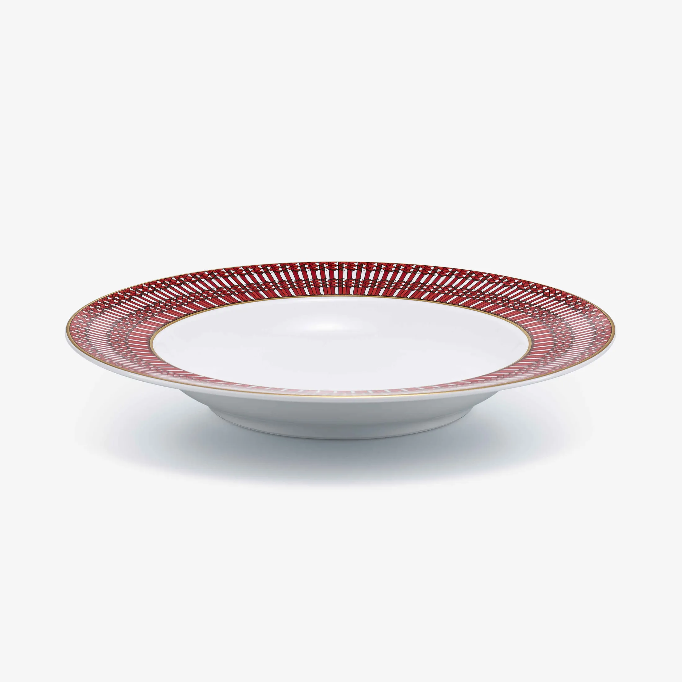 The Arcadia Red collection is a porcelain service comprising five plate designs and a “timbale”. Adorned with the Arcadia pattern, the dazzling white porcelain is enhanced by Baccarat’s signature red and precious touches of gold. An ode to joie de vivre, the Arcadia Red service harmonizes vibrantly with Baccarat’s crystal creations, accompanying moments of sharing and celebration. Arcadia is the pattern inspired by the arched windows of Baccarat’s Manufacture, celebrating what happens behind them, where for generations, passionate artisans have been creating outstanding masterpieces to enchant the world.