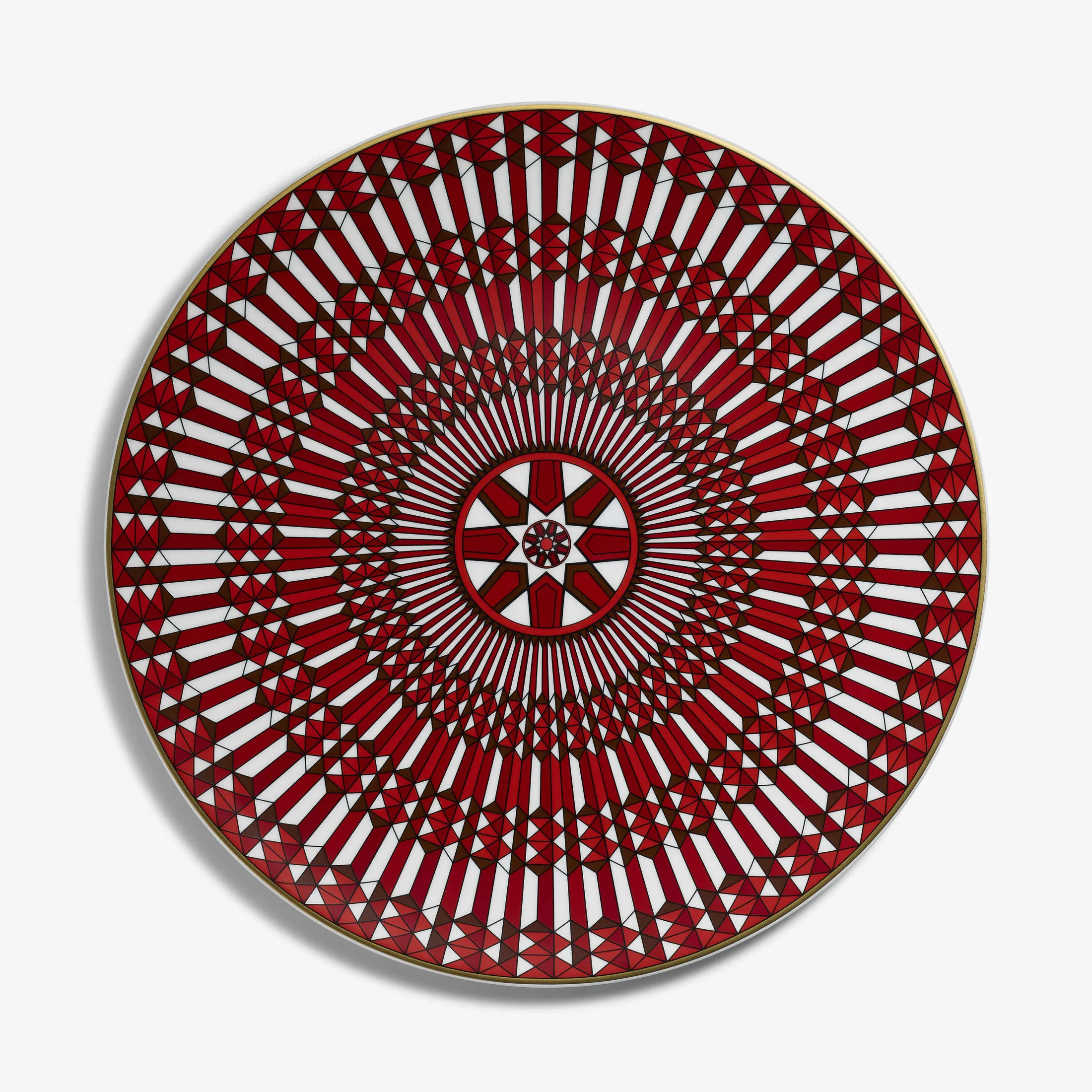 The Arcadia Red collection is a porcelain service comprising four sizes of plates and a “timbale”. Adorned with the Arcadia pattern, the dazzling white porcelain is enhanced by Baccarat’s signature red and precious touches of gold. An ode to joie de vivre, the Arcadia Red service harmonizes vibrantly with Baccarat’s crystal creations, accompanying moments of sharing and celebration. Arcadia is the pattern inspired by the arched windows of Baccarat’s Manufacture, celebrating what happens behind them, where for generations, passionate artisans have been creating outstanding masterpieces to enchant the world.