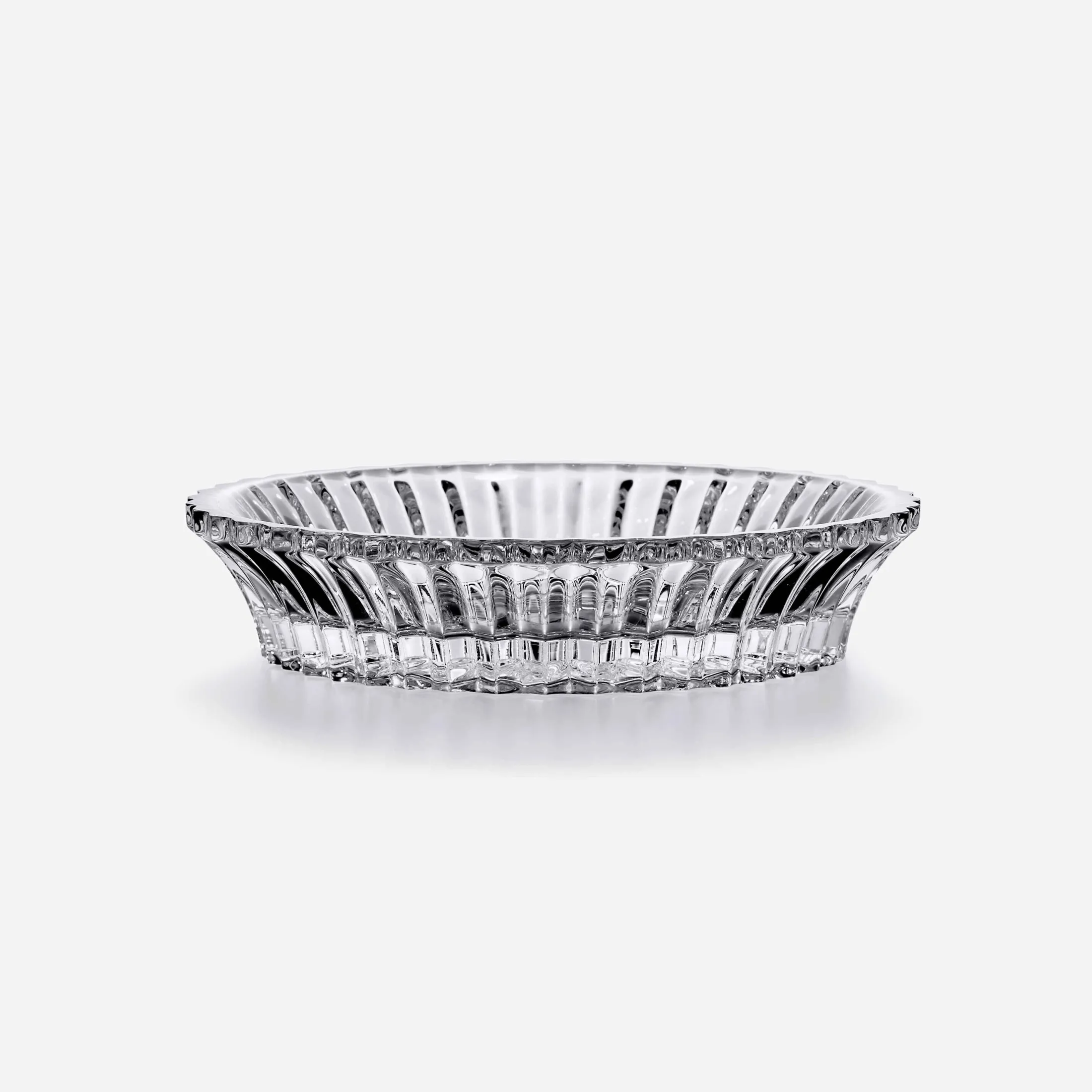 The bottom of the crystal bottle, designed by Mathias for the Baccarat « Mille Nuits » collection, is simply extraordinary. It protects your tabletop when tasting wines. The edge is cleverly crimped like a delicious pie. At the center, two concentric circles variegate the texture of the surface of the crystal and make the light sparkle. The center of each circle, irradiates alternating lines, illustrating the magic and prismatic qualities of Baccarat crystal.
