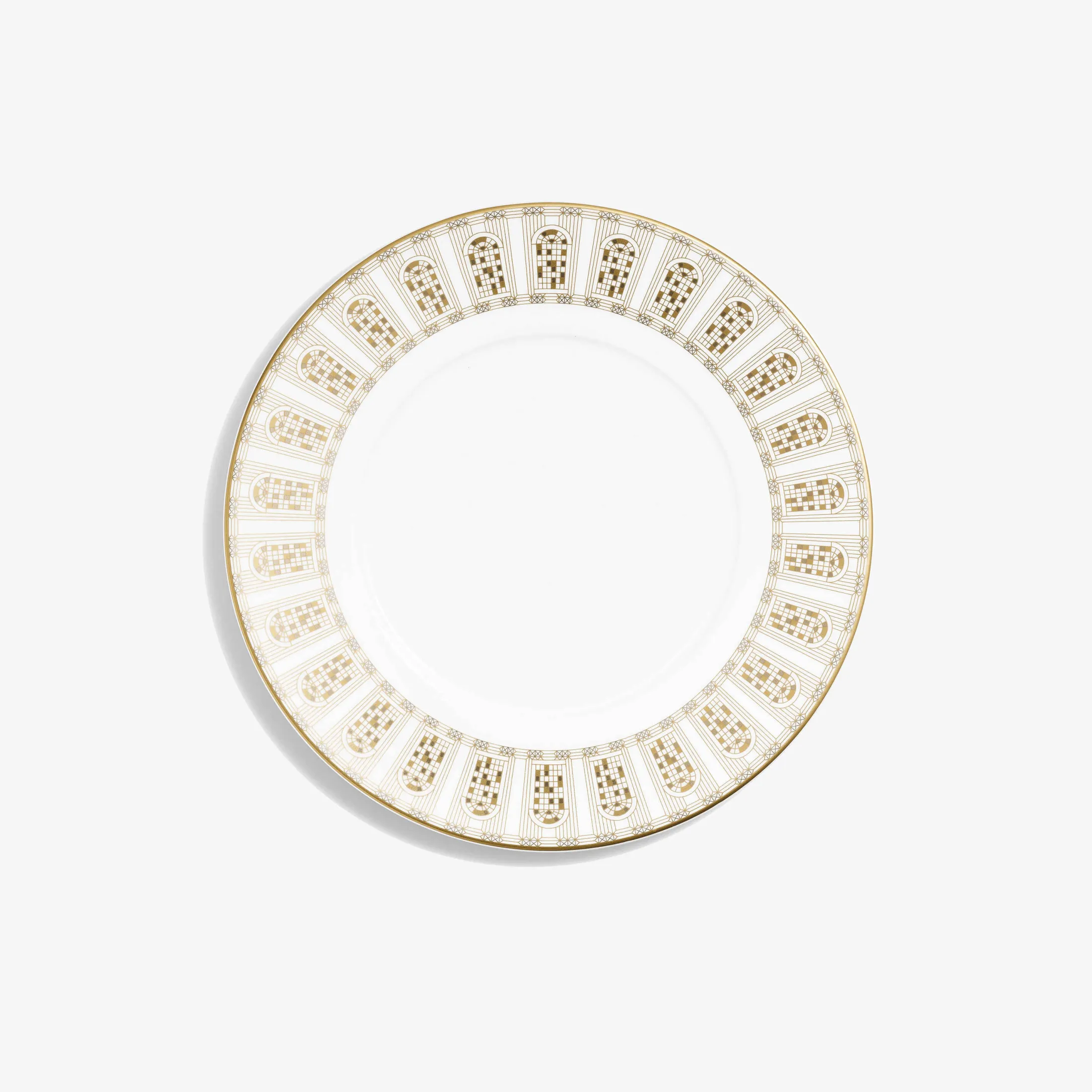 The Arcadia Gold collection is a porcelain service comprising four sizes of plates and a “timbale”. The dazzling white porcelain is enhanced by the radiance of gold and platinum, meticulously applied with exceptional artistry. An ode to joie de vivre, the Arcadia Gold service harmonizes with the Maison’s crystal creations, accompanying moments of sharing and celebration. Arcadia is a pattern inspired by the arched windows of Baccarat’s Manufacture, celebrating what happens behind them, where for generations, passionate artisans have been creating outstanding masterpieces to enchant the world.